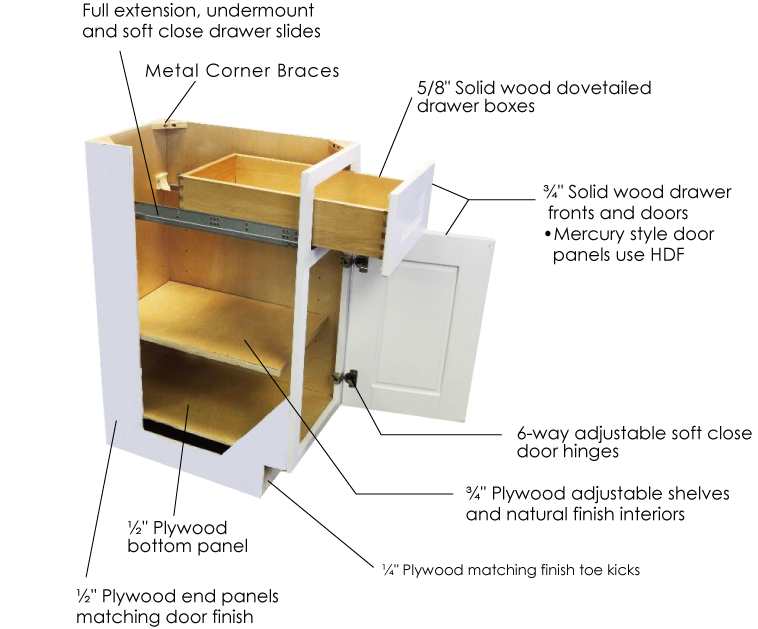 - All 5/8″ dovetailed hardwood drawer boxes
